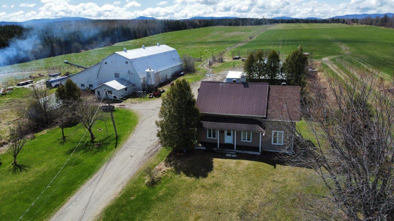 La Patrie (Estrie) : Ferme de 170,84 acres offrant 45,5 acres de terres cultivables partiellement drainées, maison de 4 chambres rénovée et superbe vue sur le mont Mégantic. Bâtiments agricoles fonctionnels incluant garage, hangar et étable pour environ 80 vaches. Forêt mixte de 113 acres traversée par un ruisseau, idéale pour la chasse et les activités plein air. Une belle occasion pour vos projets agricoles ou la vie à la campagne. MLS : 17300352