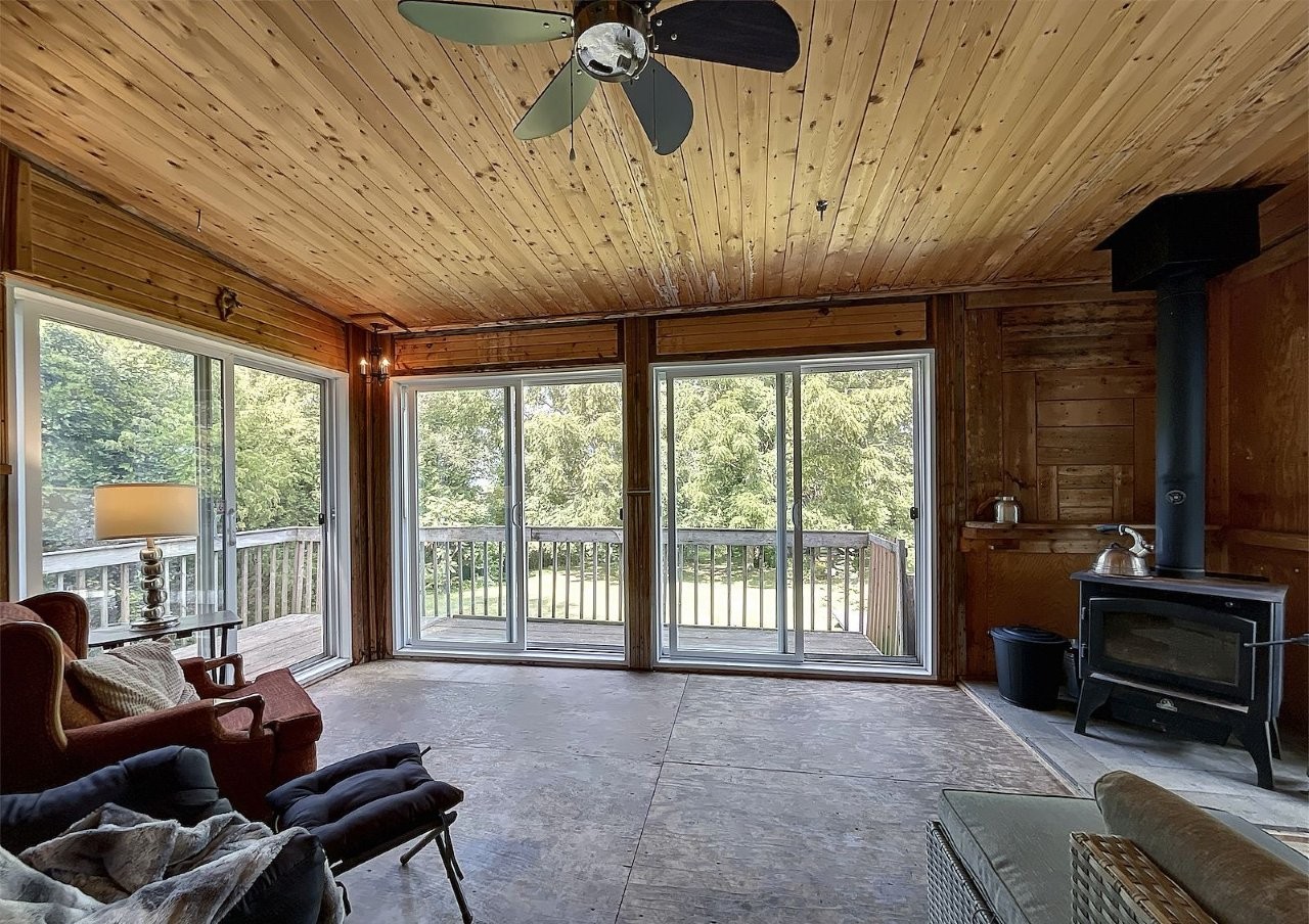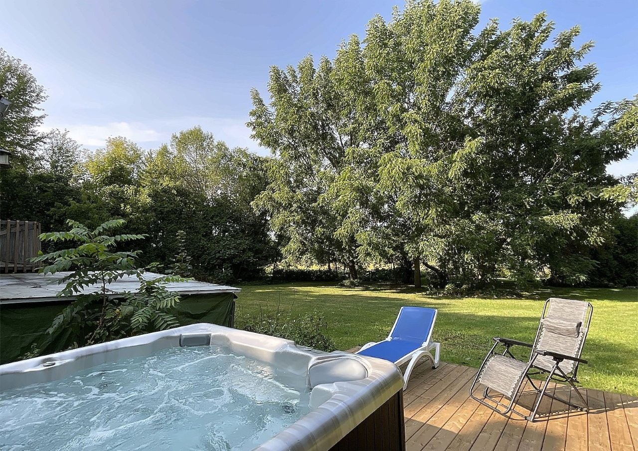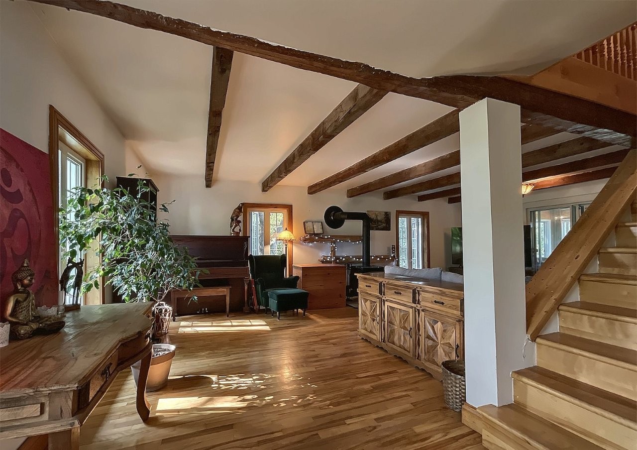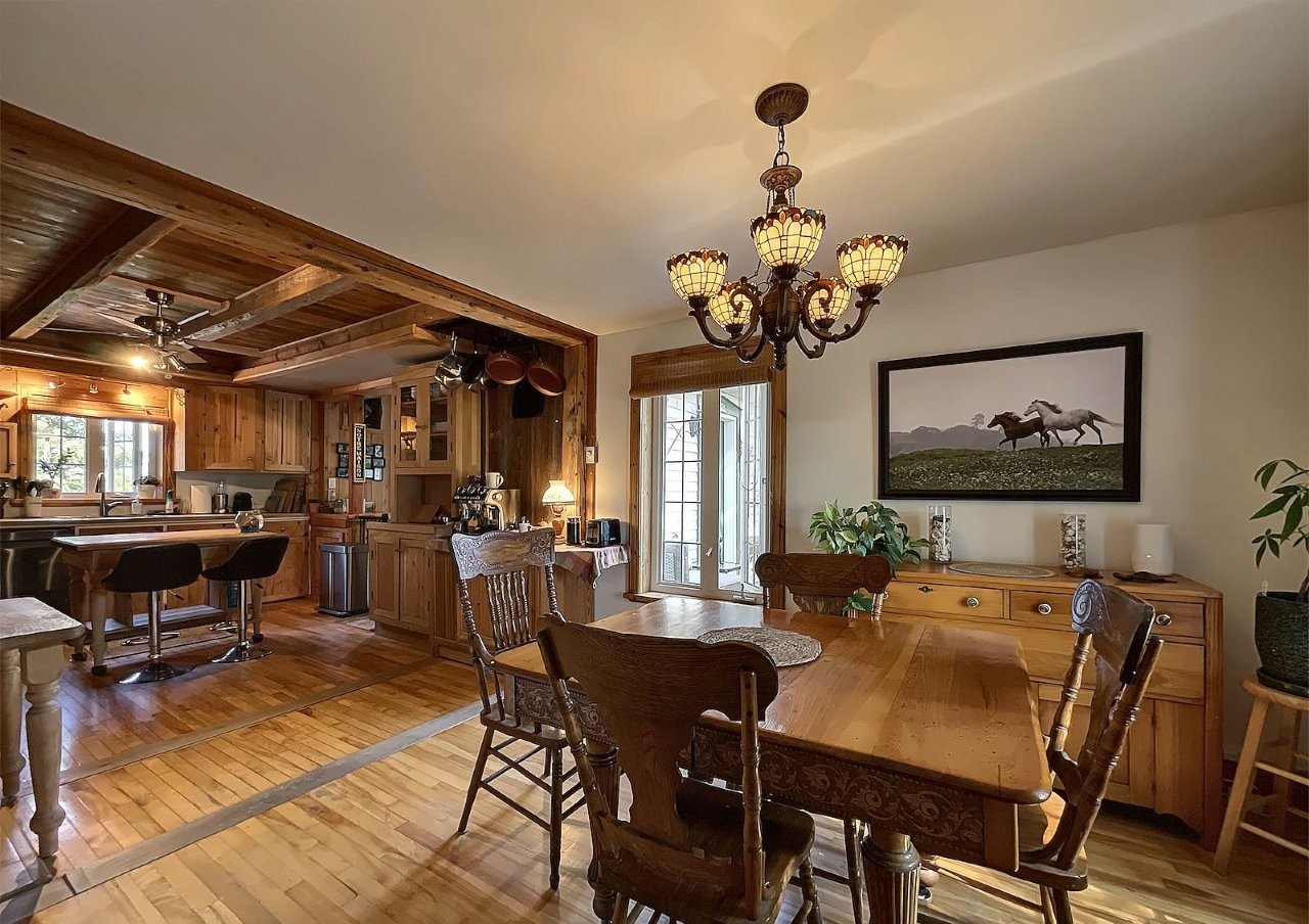 Lotbinière (Chaudière-Appalaches): Charming two-bedroom country home with potential for further development in the basement. Warm, traditional charm, a three-season sunroom with four patio doors, two wood-burning stoves, and a wood/electric furnace. Private lot with mature trees and fruit trees, a hot tub, and a equipment shed. 23.03-acre property with approximately 7 acres of arable land, forest with over 3 km of trails, a stream, and a bridge. Operating dog boarding facility with attractive income, established clientele, and potential for transfer (negotiable). A true rural paradise waiting to be discovered! MLS : 27629333