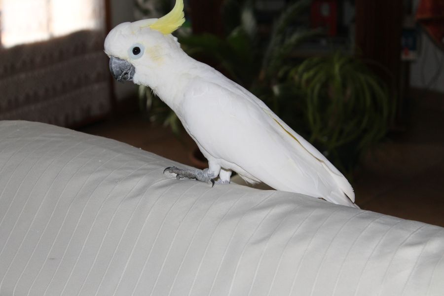 Cacatoès crête jaune mâle 4 ans à avec sa cage à la recherche d’une nouvelle famille contre bon soinavec certificat de sexage.