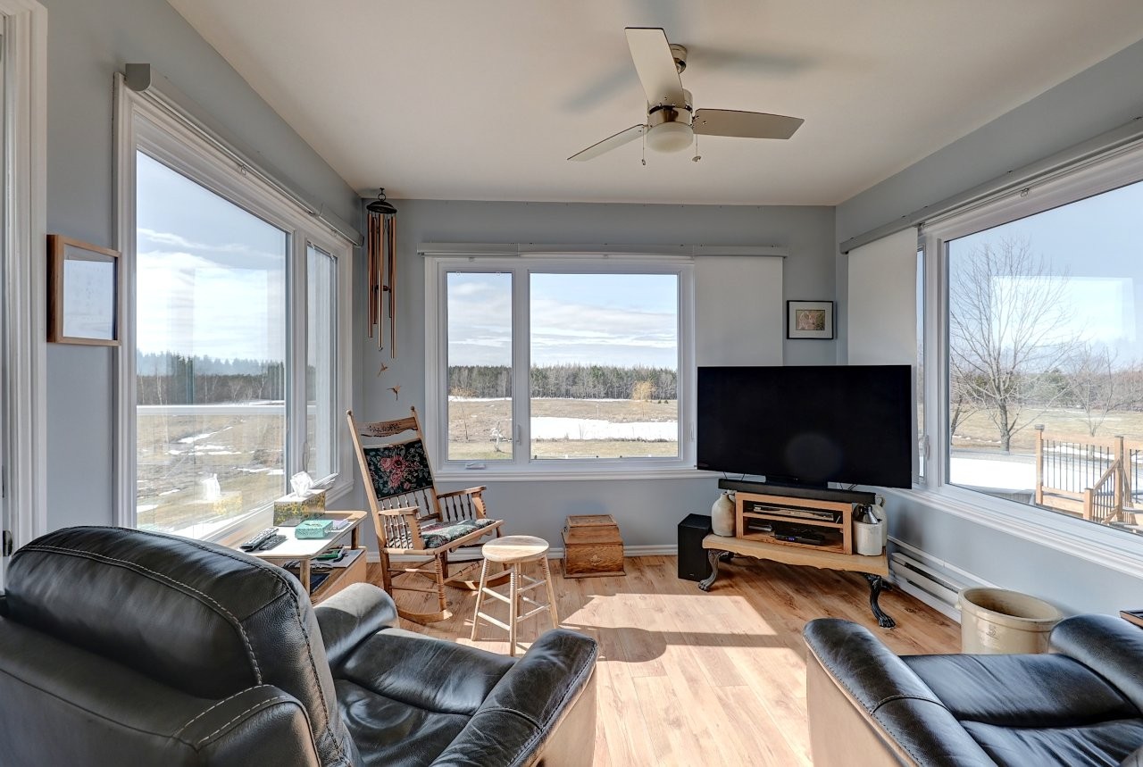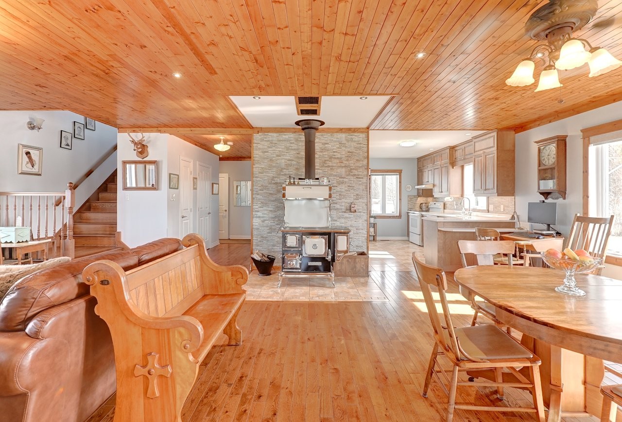 St-Georges-de-Windsor (Estrie) : Fermette clé en main de 69,78 acres offrant tranquillité et intimité. Maison 2008 très bien entretenue offrant une excellente efficacité énergétique. Garage attenant, trois chambres, bureau et véranda quatre saisons chauffées avec vue sur la prairie. Aire de vie lumineuse et conviviale, salle à manger avec cuisinière au bois et cuisine fonctionnelle. À l’étage, chambres, salle de bain complète et vue sur le Mont Orford. Sous-sol polyvalent avec bureau, atelier et rangement. Deux garages détachés, forêt avec sentiers, étang et piscine chauffée. À 30 min de Sherbrooke. MLS : 24657755