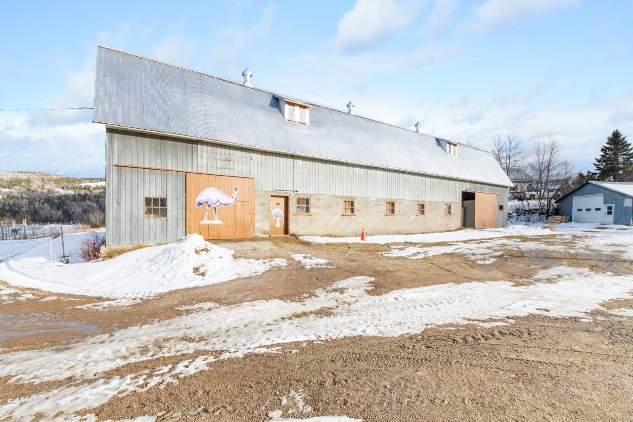 St-Urbain (Capitale-Nationale): Located on 24.63 acres (29.15 arpents) of land bordered by the Gouffre River, this property stands out for its emu operation — the only natural emu breeding farm in Québec. It offers a range of processed products, including emu oil and several gourmet creations, available in more than sixty points of sale and through two online boutiques. The estate includes an économusée, full agricultural facilities, a residence with a guesthouse, and high-quality farmland. MLS : 25069603
